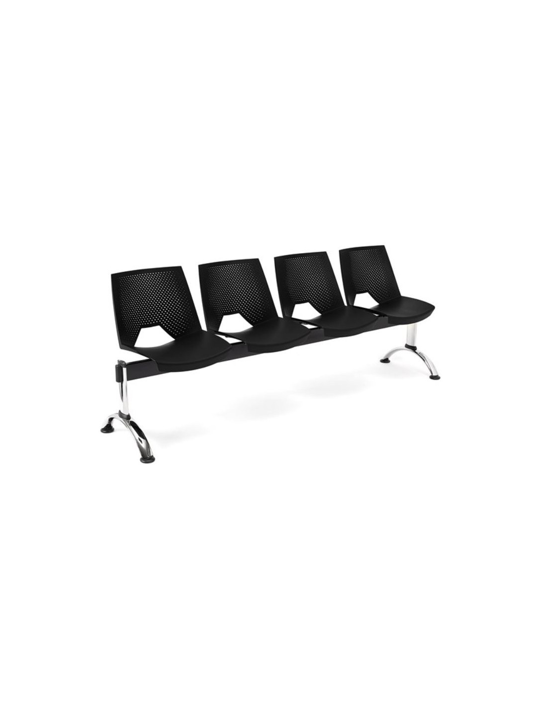 Bancada STRIKE, fabricada en material plástico de gran resistencia llamado polipropileno. Hecha con carcasa monoblock y respaldo perforado para una mejor transpiración. Estructura de marco de acero con patas de aluminio, ideal para uso intensivo. Higiénica, fácil de limpiar y ofrece comodidad y un estilo moderno para recepciones o salas de espera. Disponible en diferentes tamaños 2-3-4-5 asientos y tiene como opción, sustituir un asiento por una mesa auxiliar en la misma medida que el asiento (consultar opción). Modelo de 4 asientos.