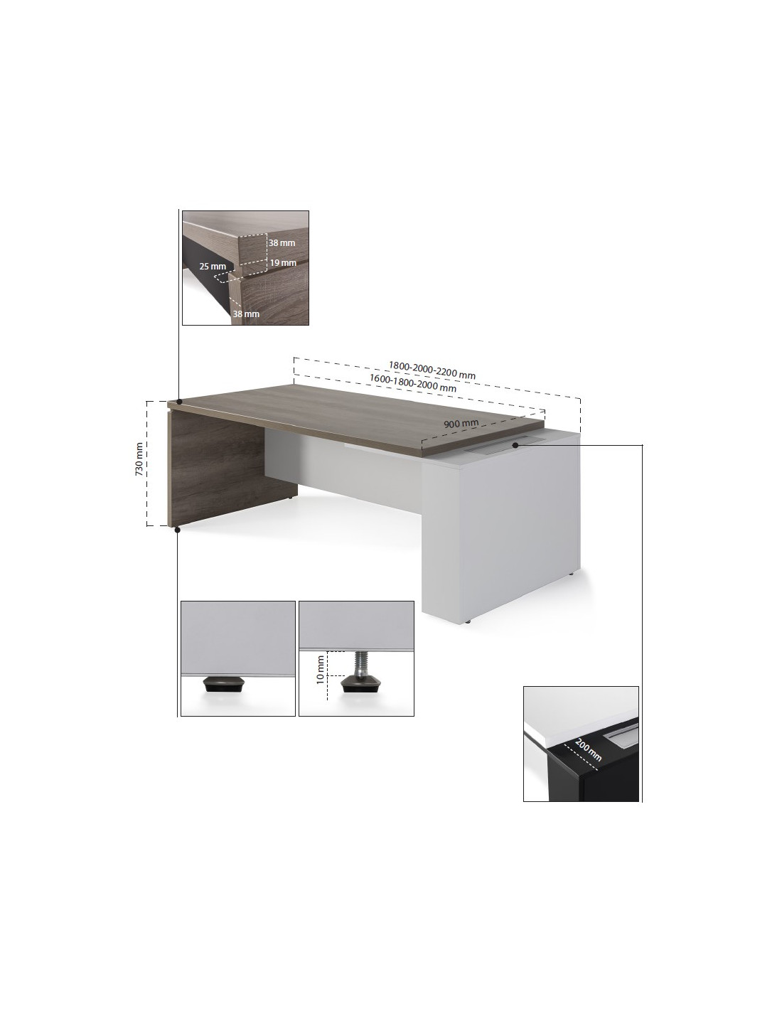 Una gran mesa que se adapta al nuevo concepto de despachos de dirección y subdirección. Es un conjunto moderno y versátil que nos ofrece la posibilidad de crear múltiples combinaciones diferentes. Además, la serie se adecúa a la era tecnológica ya que está ideada para ocultar el molesto cableado. Como en la mesa asimétrica G.3.2 que cuenta con un pie hueco con top access cuya finalidad es la de esconder el cableado de los aparatos electrónicos. El mayor grosor de las tapas de mesa, así como la calidad de los materiales, ponen a esta colección en lo más alto de los despachos direccionales.