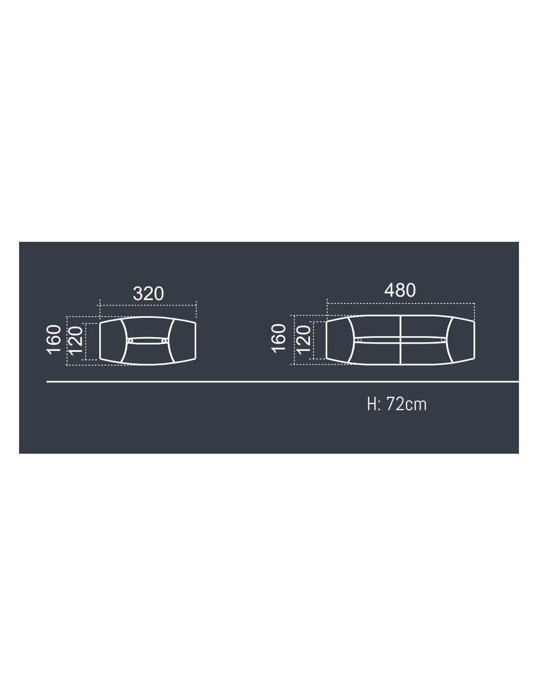 | Medidas | 3200 x 1200-1600 x 720mm y 4800 x 1200-1600 x 7200mm (los costados más largos, no son rectos, van arqueados teniendo unas medidas de 1200mm en frentes esquinas cortas, 1600mm centro de costados largo de la mesa). |