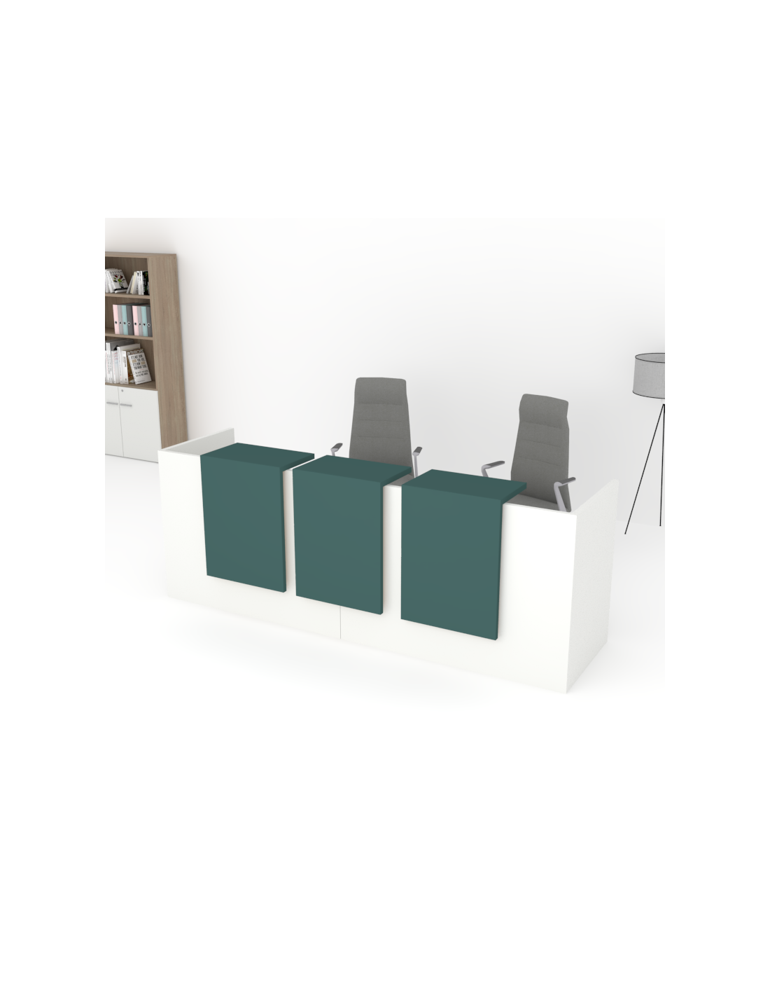 Continuamos con la línea de mostradores, incluyendo un modelo diseñado con líneas elegantes y contemporáneas, ideal para oficinas, tiendas o negocios que buscan dar una impresión innovadora y profesional. Este modelo está pensado para aquellas recepciones que necesitan más personal para su atención. Dispone de 3 sobremostradores con un colorido a elegir que destaca por sus colores atrevidos y que diferencian los puestos de atención, facilitando el acceso de los clientes al punto donde pueden ser atendidos.