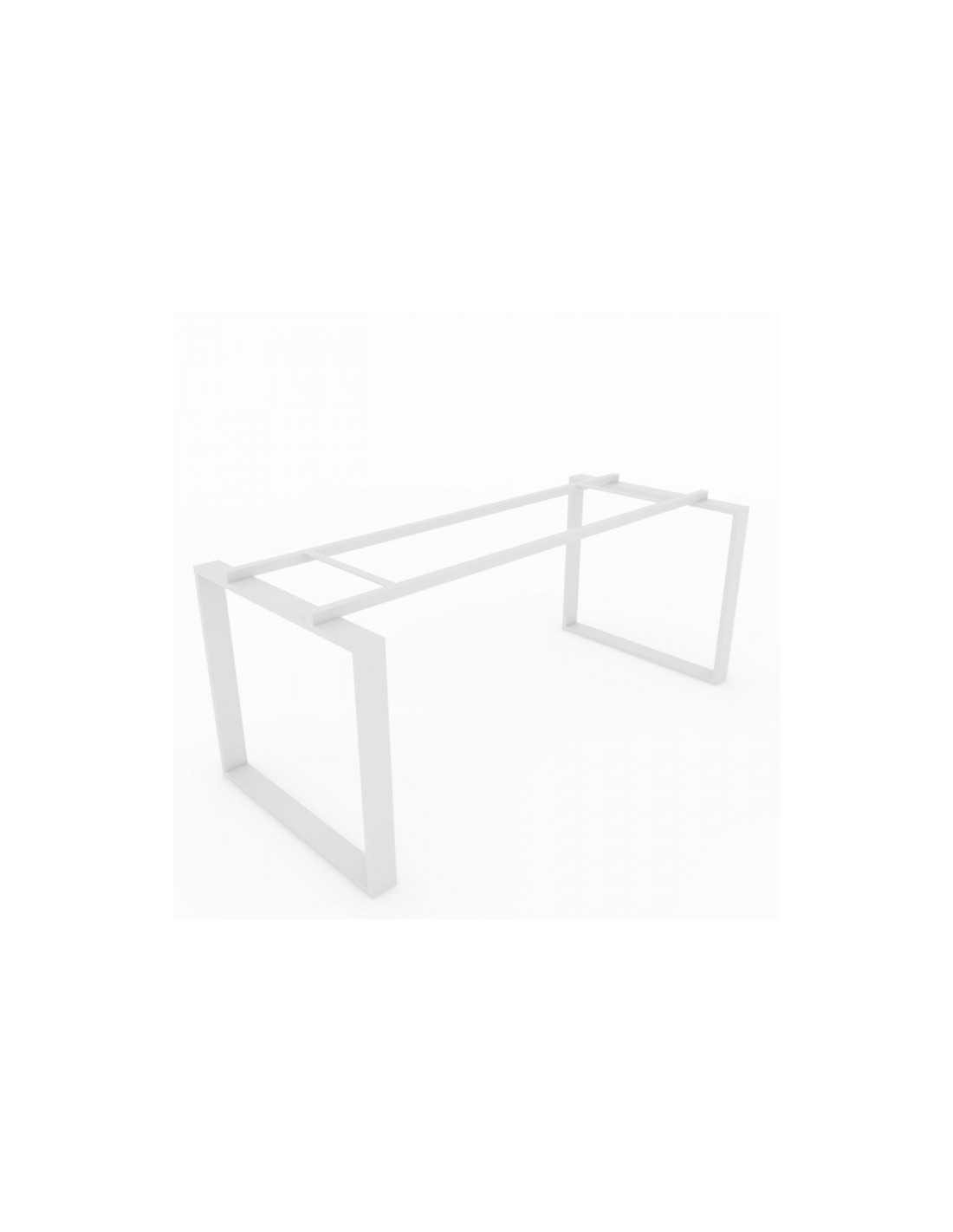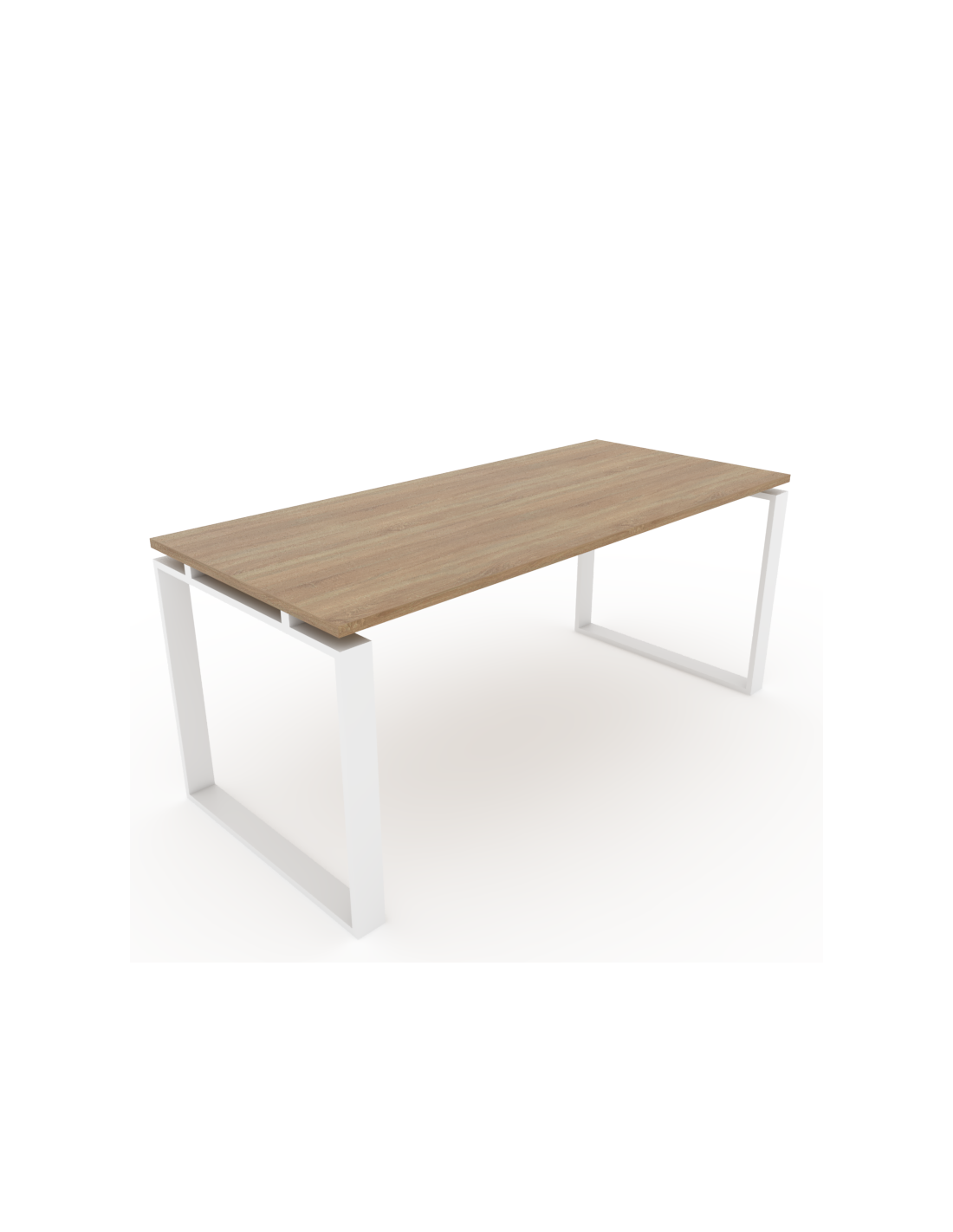 Mesa Tapa de la mesa fabricada con un tablero canteado y laminado de 25mm de espesor. Estructura metálica, de dos patas con forma de cuadrado, fabricadas en tubo con una sección de 80x20mm. Largueros metálicos, de refuerzo, en tubo de 30x30mm, bajo la tapa de mesa.