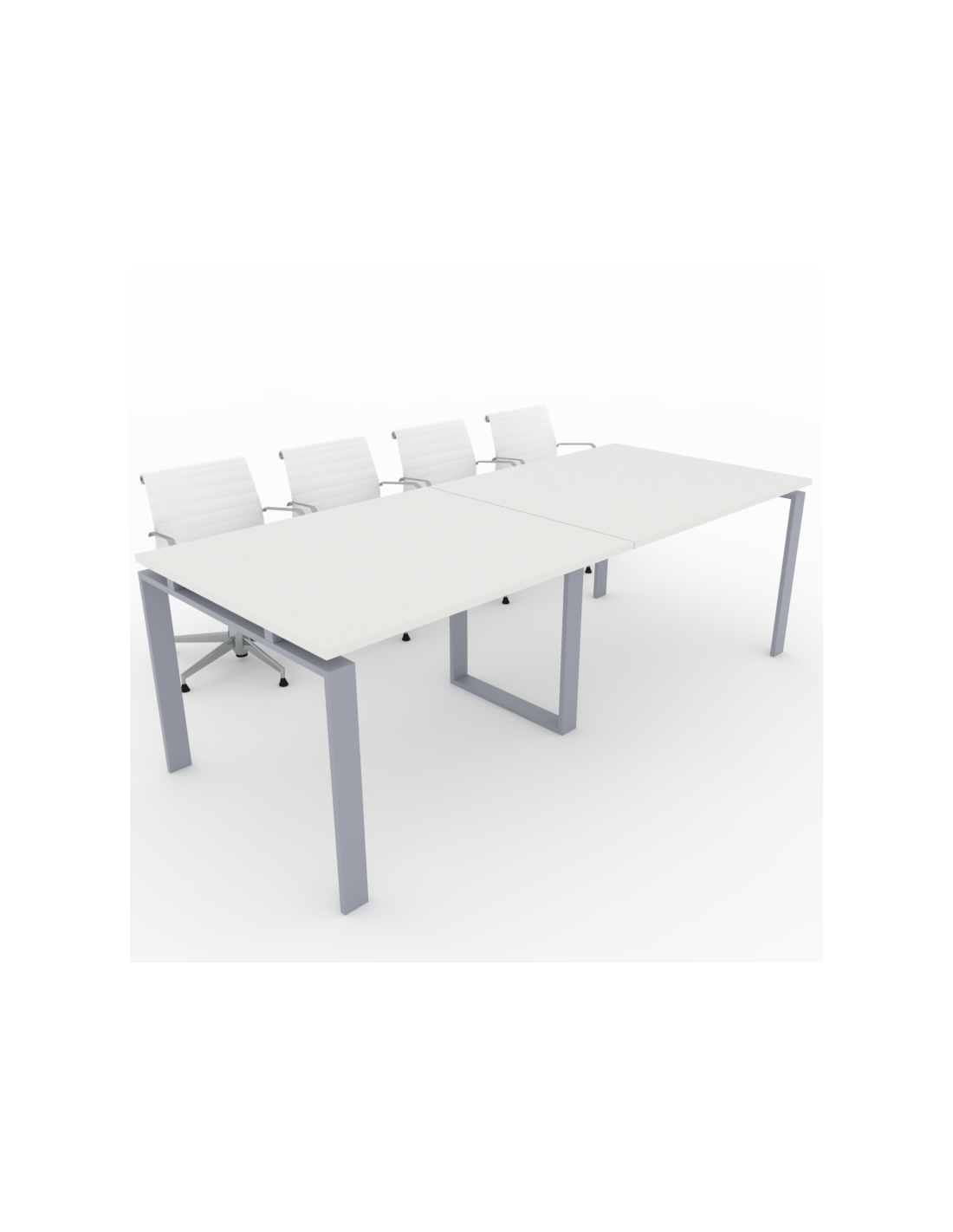 Mesa Tapa de la mesa fabricada con un tablero canteado y laminado de 25mm de espesor. Estructura metálica, de dos patas con forma de U invertida y una central en forma de cuadrado, fabricadas en tubo con una sección de 80x20mm. Largueros metálicos, de refuerzo, en tubo de 30x30mm, bajo la tapa de mesa. Opcionalmente, se puede añadir la posibilidad de instalar pasacables en la superficie de la mesa.