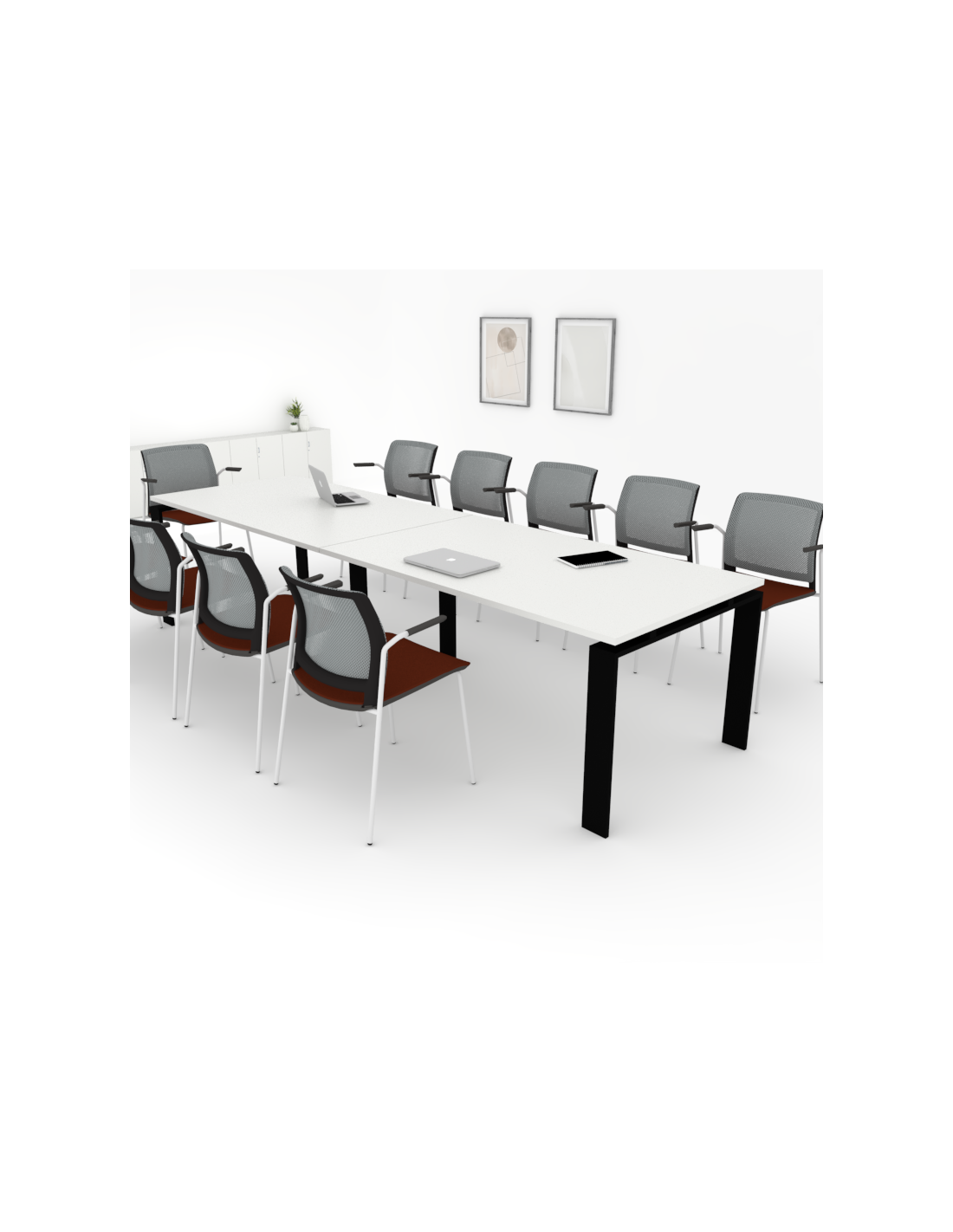 Nuestra variedad de medidas, modelos y texturas en los tableros que ofrecemos en nuestras mesas, completan un catálogo de mesas de oficina que no deja indiferente al cliente. Esta mesa de reunión es perfecta para oficinas que buscan una combinación de estilo contemporáneo, funcionalidad y espacio optimizado. Nuestras mesas de reunión de marco abierto facilita la movilidad de las sillas, permitiendo que los usuarios se ubiquen cómodamente desde cualquier ángulo, lo que es especialmente útil en reuniones más largas o cuando se requiere una interacción más dinámica. Además, cuenta la posibilidad de incluir pasacables, ayudando a mantener el espacio de trabajo ordenado y libre, encontrará los que tenemos disponibles en el menú, dentro de la categoría de mesas de oficina.