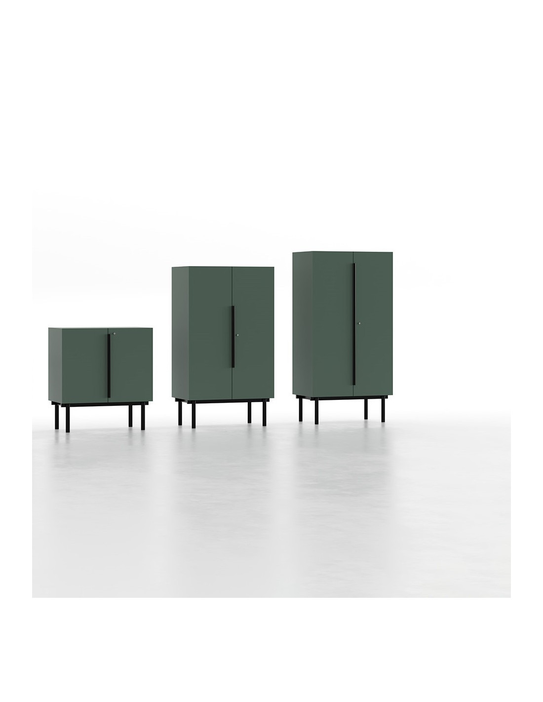 Descubre el armario Tono, una pieza de diseño actual que une practicidad y belleza en un estilo limpio y sofisticado. Su acabado en superficie zenit supermate brinda una sensación cálida y acogedora, añadiendo carácter a cualquier ambiente y adaptándose con facilidad a decoraciones modernas, nórdicas o de inspiración industrial. Con patas metálicas negras de forma ovalada que garantizan firmeza y un tirador vertical de aluminio en elegante color negro, el armario Tono destaca por su presencia equilibrada y su construcción sólida. Perfecto para salones, oficinas, despachos o zonas de reunión, ofrece un generoso espacio de organización sin perder un toque de distinción.