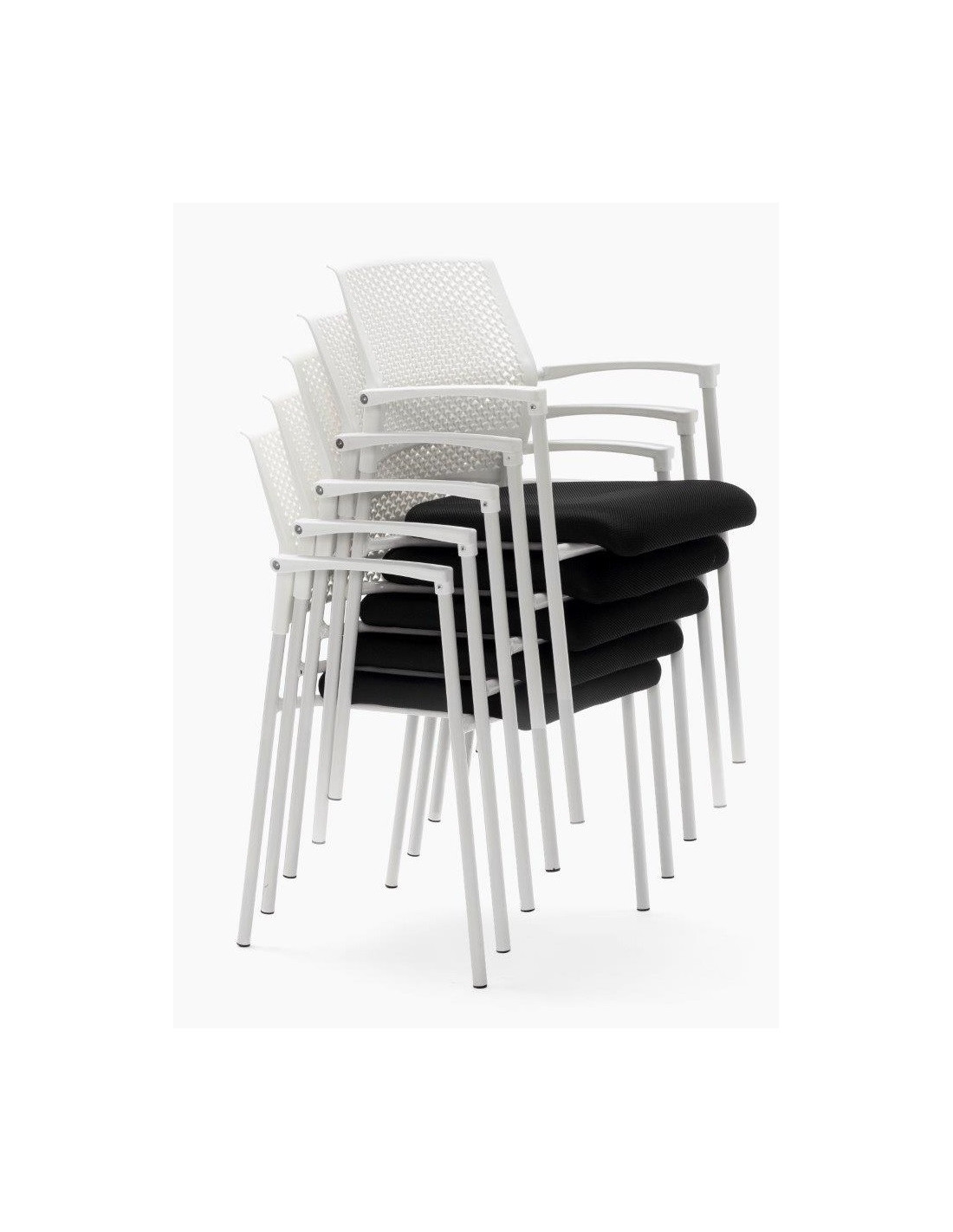 Estructura Apilable de cuatro patas fabricadas con tubo de acero redondo en terminación epoxi color negro o blanco. Dispone de tacos que apoyan en suelo y que al mismo tiempo protegen las patas al apilar.