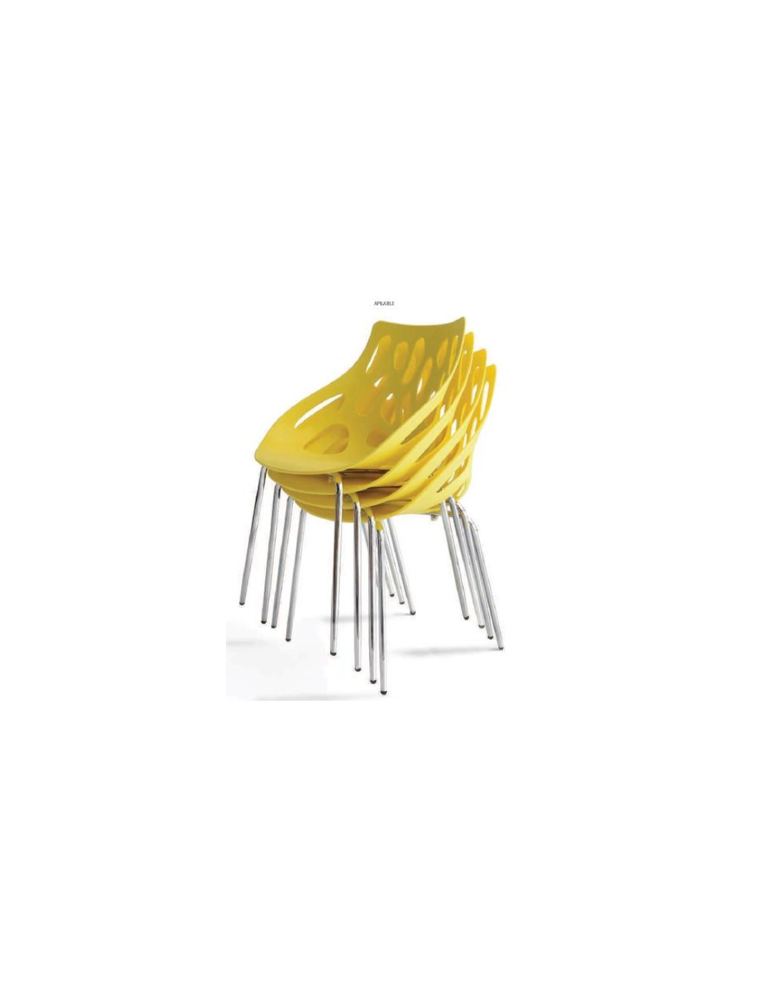 Una de las prácticas opciones de esta silla confidente, es que es apilable, lo que permite tener la opción de ocupar poco espacio cuando no la tenemos en servicio continuado. En el uso en espacios colectivos es donde más solicitan que la silla se apile y pueda quedar en el mínimo de ocupación siempre que sea necesario. Es moderna y con un colorido atrevido y moderno.
