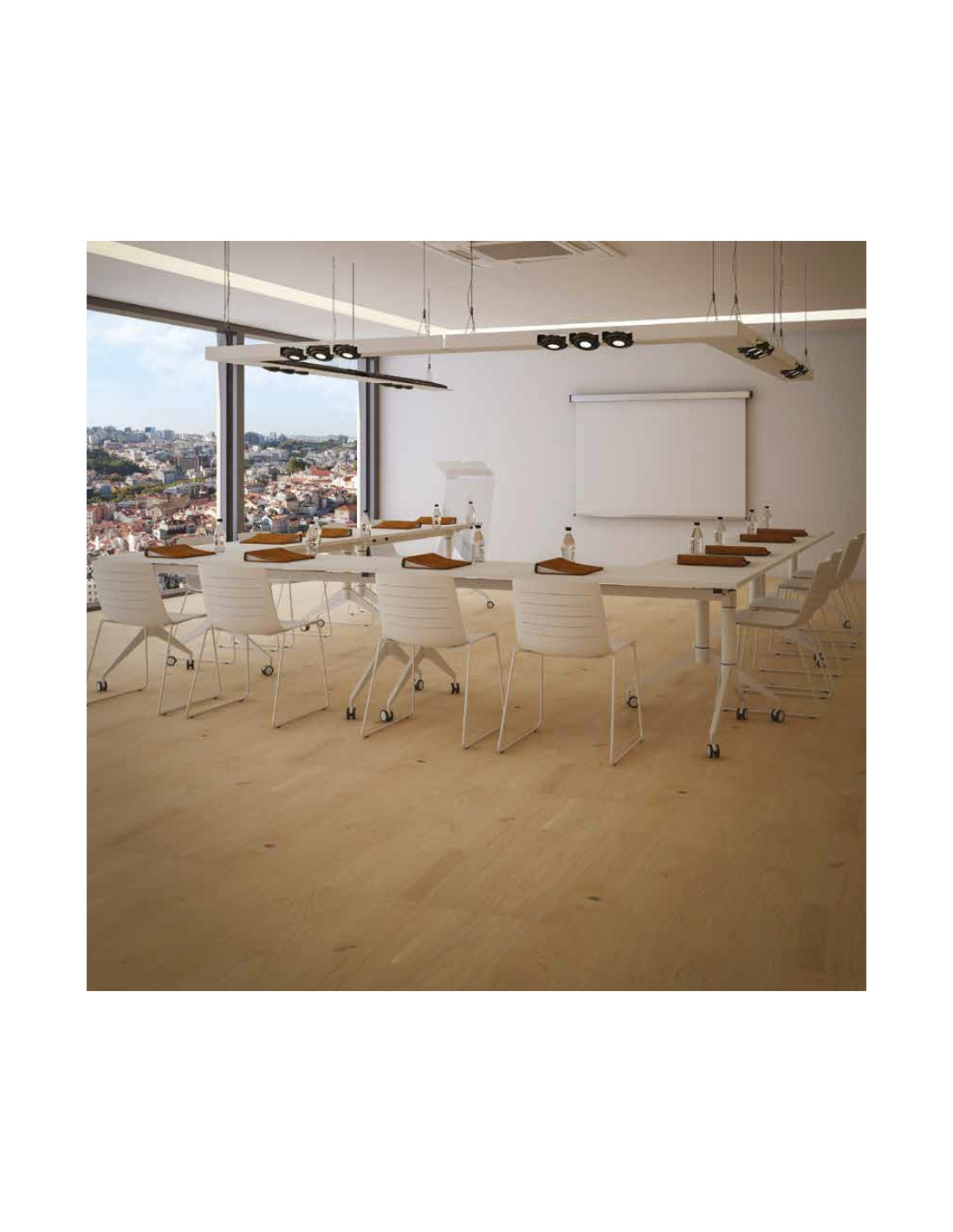 Base Apoyo en forma de patín, de acero pintado en blanco.