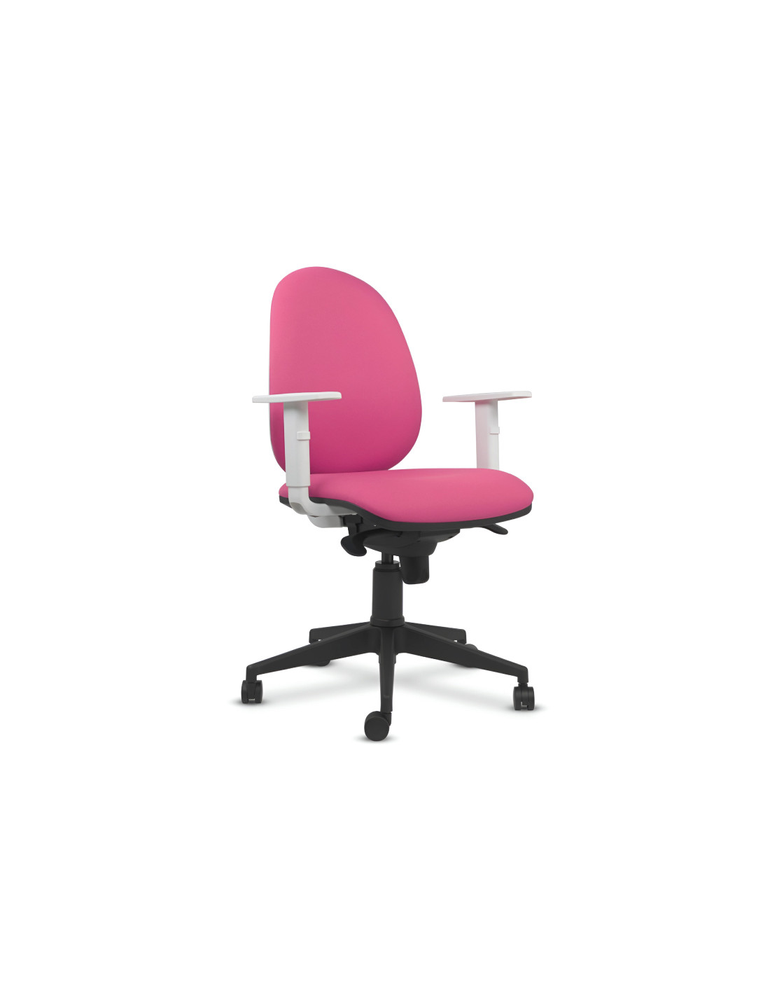 Esta silla giratoria está disponible con un tapizado en una amplia gama de colores. Cuenta con un sistema syncro, mientras que su base está diseñada en nylon, mejorando su resistencia y durabilidad. Su asiento y respaldo están tapizados, fabricados con una goma flexible de alta densidad, y unos reposabrazos en color blanco, haciendo que su uso sea cómodo y ergonómico, Ideal para oficinas, despachos, oficinas en casa, estudiantes.