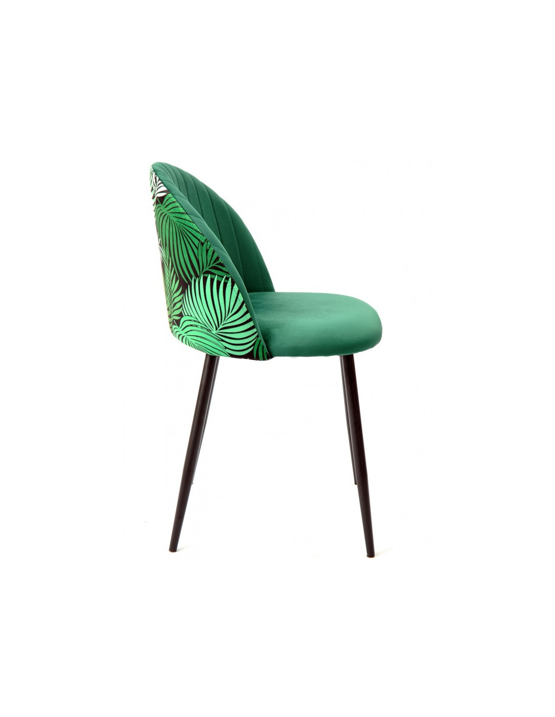 Ofrece a tu espacio un toque de personalidad, gracias a esta elegante silla tapizada en terciopelo Velvet. Su diseño Su diseño, con respaldo curvado y costuras verticales, ofrece una máxima comodidad. Las patas metálicas negras brindan estabilidad y un contraste moderno, mientras que el estampado colorido floral de la parte trasra añade un toque único y original. Ideal para salones, comedores, oficinas, salas de reunión o de espera o cualquier rincón especial de tu hogar.