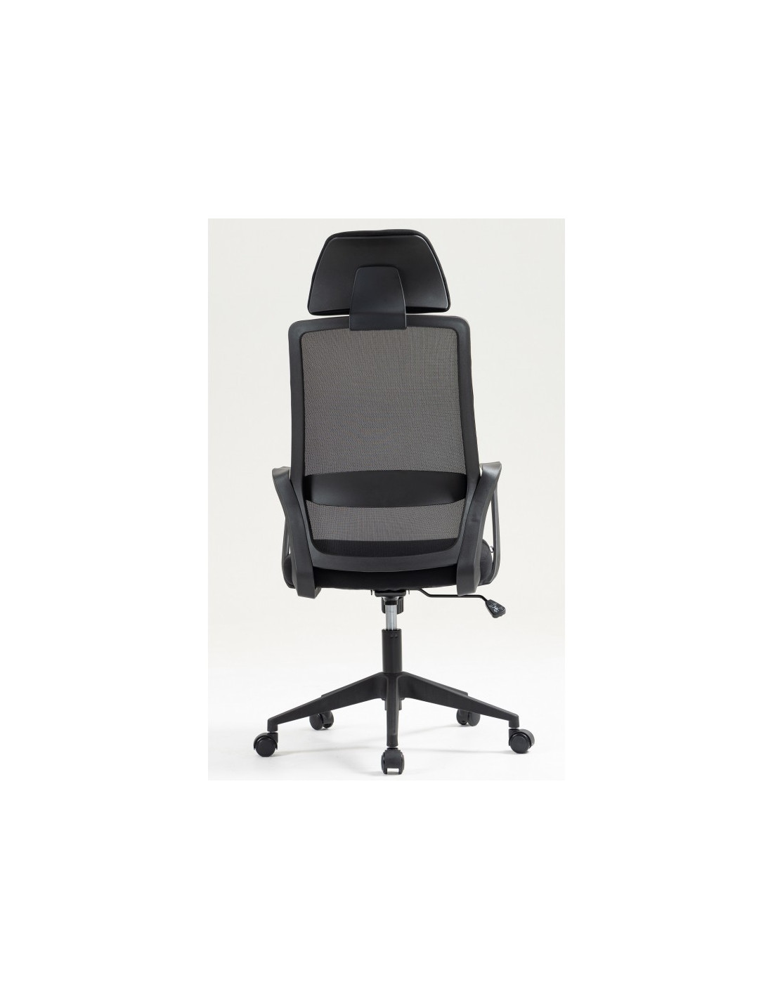Esta silla de oficina destaca por su diseño moderno y elegante que se adapta con facilidad a cualquier entorno profesional o de trabajo en casa. Su respaldo alto en malla, disponible en negro o gris, ofrece una excelente ventilación y comodidad durante largas jornadas. El cabezal tapizado en similpiel, a juego con el respaldo, aporta un toque sofisticado y funcional. Los reposabrazos fijos brindan soporte adicional y contribuyen a una postura más cómoda. La base giratoria con ruedas permite una movilidad ágil y estable en todo tipo de superficies. Ideal para oficinas, despachos, salas de reuniones o espacios de home office que buscan estilo y practicidad en un solo producto.