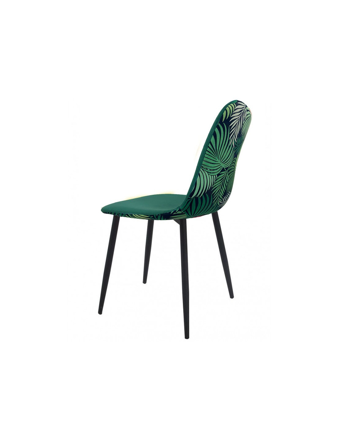 Convierte cualquier estancia en un espacio lleno de estilo con esta silla tapizada en velvet que combina confort y diseño. Su respaldo con estampado floral en contraste con el asiento de terciopelo amarillo vibrante aporta un toque único y original que no pasa desapercibido. El acabado suave al tacto y su estructura ergonómica la hacen ideal tanto para uso diario como para realzar la decoración de comedores, salas de estar, escritorios o incluso espacios comerciales. Sus patas metálicas en color negro mate aseguran resistencia y estabilidad, mientras que su estética moderna se adapta perfectamente a ambientes contemporáneos, nórdicos o eclécticos.
