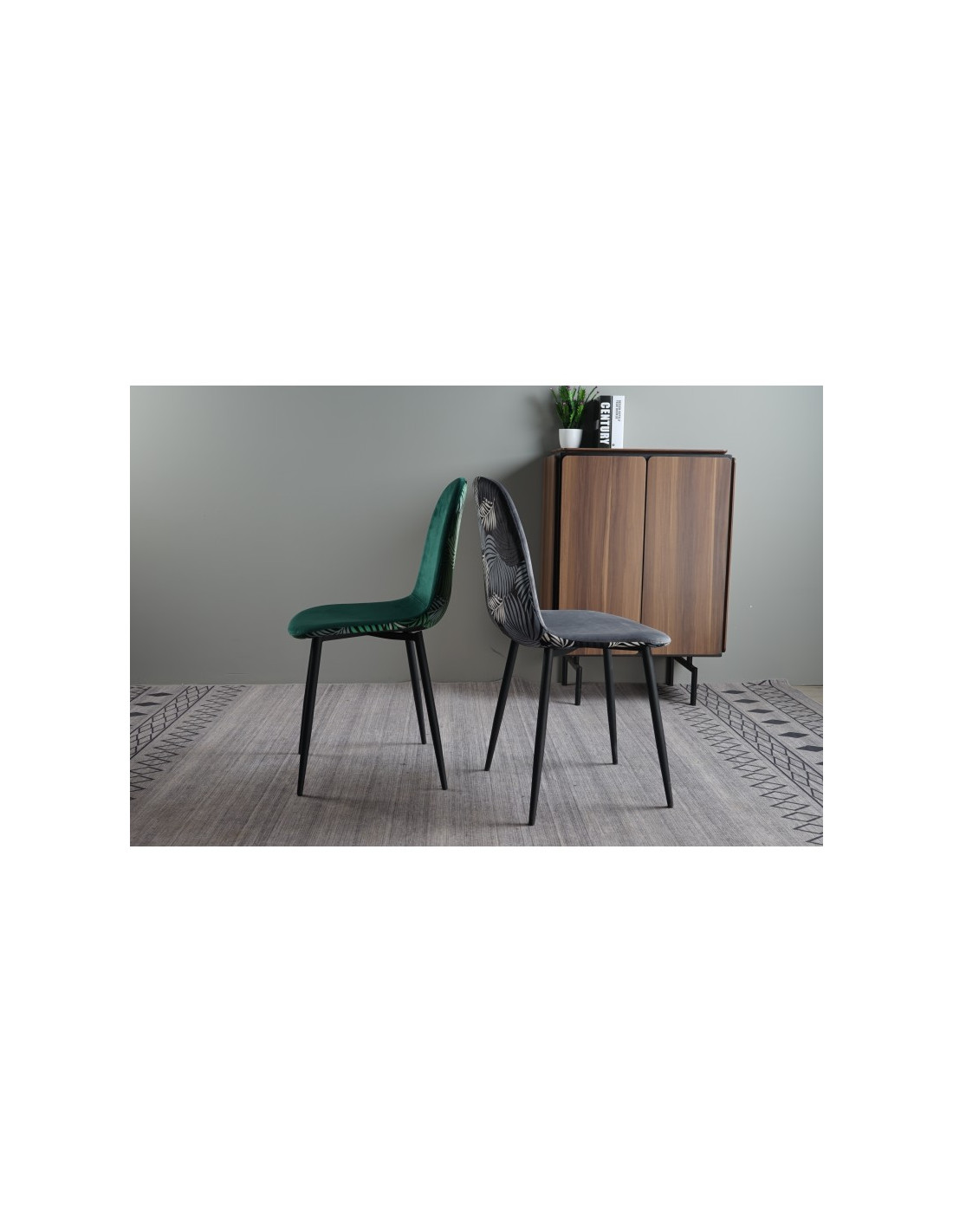 Convierte cualquier estancia en un espacio lleno de estilo con esta silla tapizada en velvet que combina confort y diseño. Su respaldo con estampado floral en contraste con el asiento de terciopelo amarillo vibrante aporta un toque único y original que no pasa desapercibido. El acabado suave al tacto y su estructura ergonómica la hacen ideal tanto para uso diario como para realzar la decoración de comedores, salas de estar, escritorios o incluso espacios comerciales. Sus patas metálicas en color negro mate aseguran resistencia y estabilidad, mientras que su estética moderna se adapta perfectamente a ambientes contemporáneos, nórdicos o eclécticos.