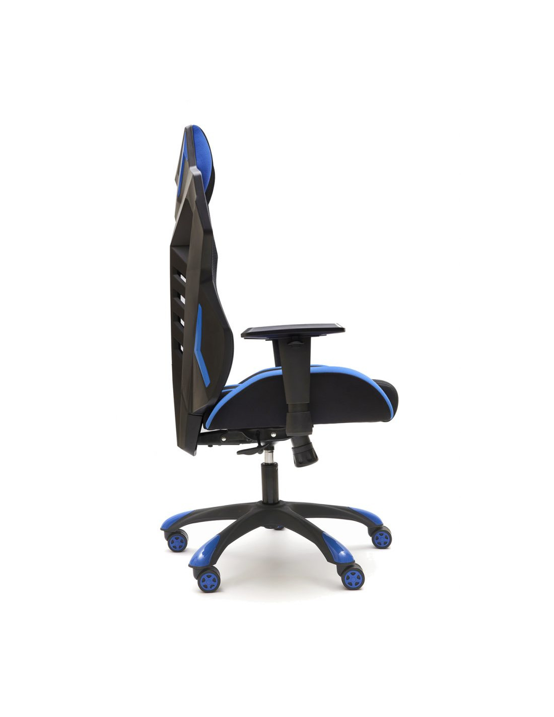 | Base | Base en nylon negro con detalles azules, diámetro de 70 cm y 5 radios. Ruedas fabricadas en nylon negro y bajo perfil. |