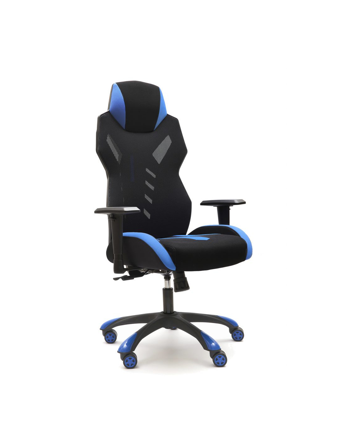 | Respaldo | Respaldo tapizado en malla de alta resistencia de superficie suave y alta transpiración. Negra con detalle azul |