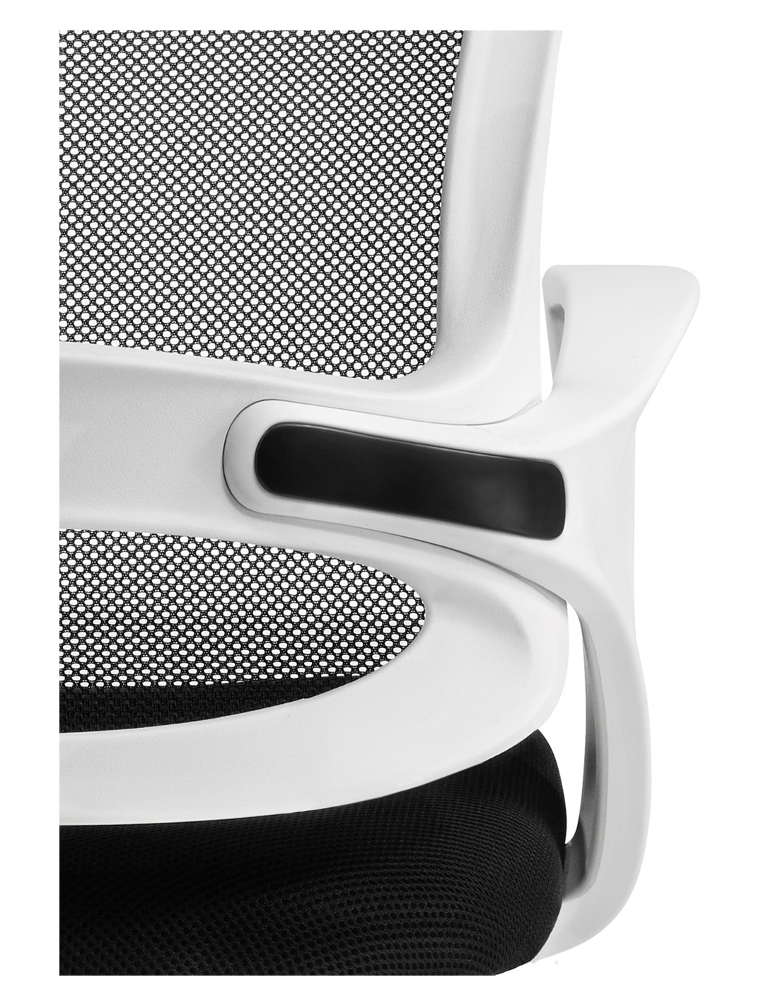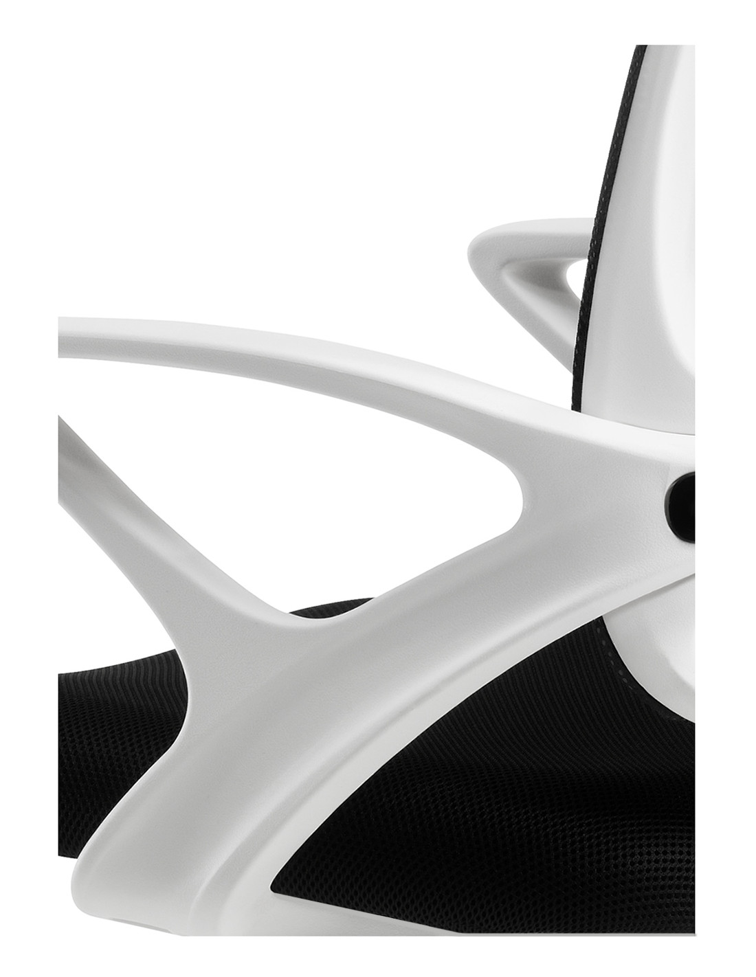 Diseño original e innovador en esta silla de oficina. Su carcasa y base en color blanco hacen que no pase desapercibida y sea un elemento de decoración en cualquier oficina profesional o despacho en casa. Una silla operativa con prestaciones de balanceo y altura por pistón de gas. Los brazos fijos, formado parte de la estructura le dan una imagen muy moderna.
