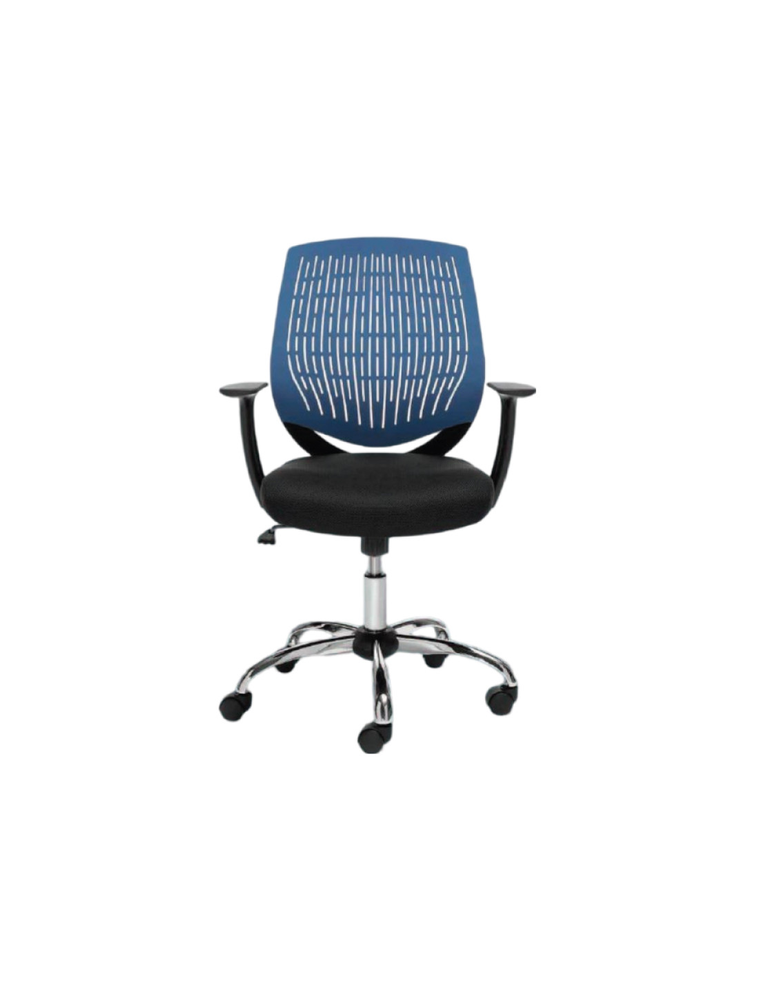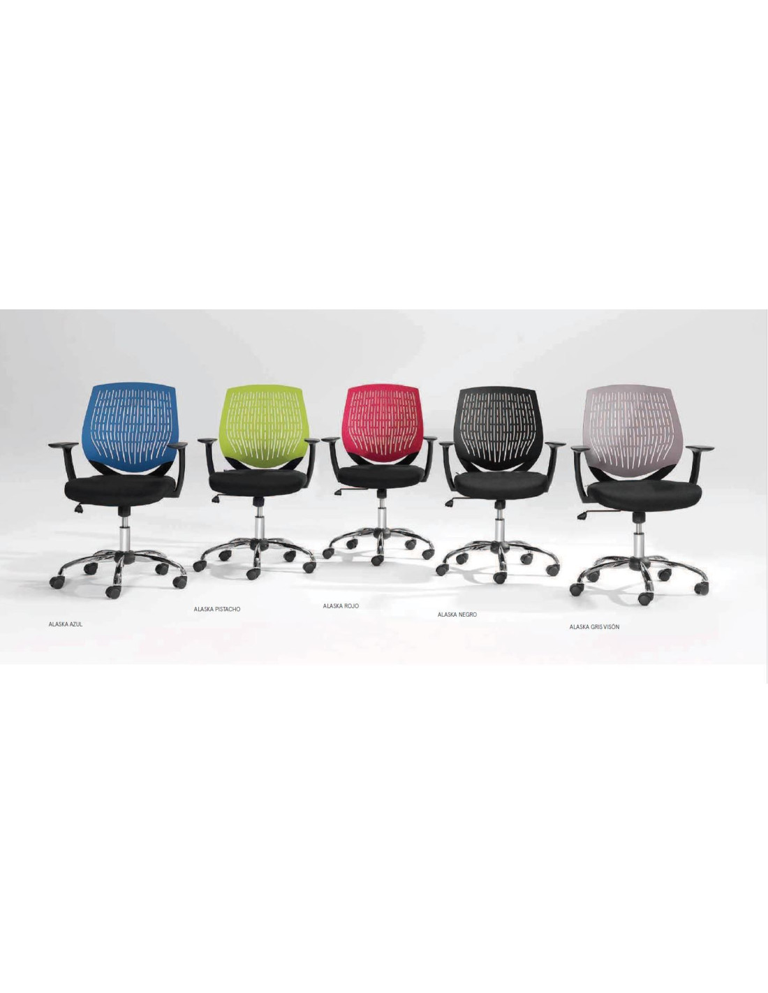 Silla giratoria operativa de diseño moderno y con un colorido que permite adaptar a cualquier tipo de decoración en la empresa. El respaldo de polipropileno perforado con formas redondeadas junto al asiento acolchado y tapizado textil, lo hacen un sillón que completa cualquier puesto como acompañante de mesas operativas, donde el trabajo intensivo está lleno de horas de trabajo.