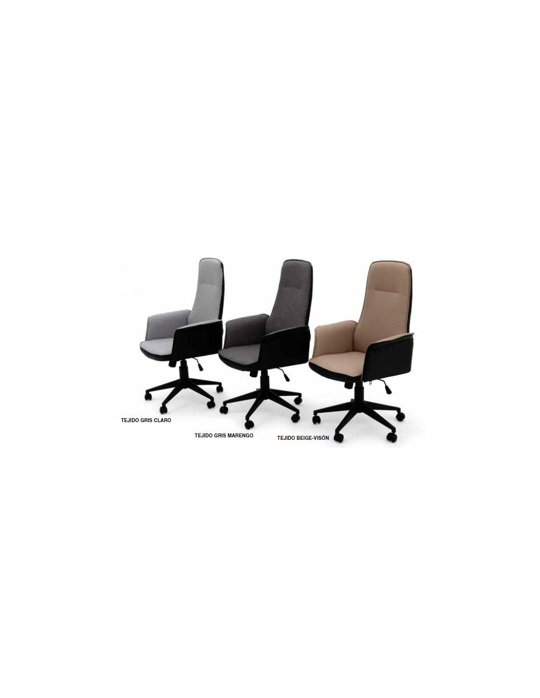Sillón de oficina de estilo tradicional con líneas sobrias y cómodas, tapizado en tejidos claros y el contra de respaldo en ecopiel. Platton es el sillón de despacho por excelencia, su acolchado y su sistema basculante le aportan el confort necesario para hacer de su zona de trabajo un lugar cómodo y agradable. Con estructura interna de madera, el colorido del tapizado a elegir y el combinado interior y exterior, le dan el toque perfecto para no pasar desapercibido en ninguna oficina o despacho en que esté presente.