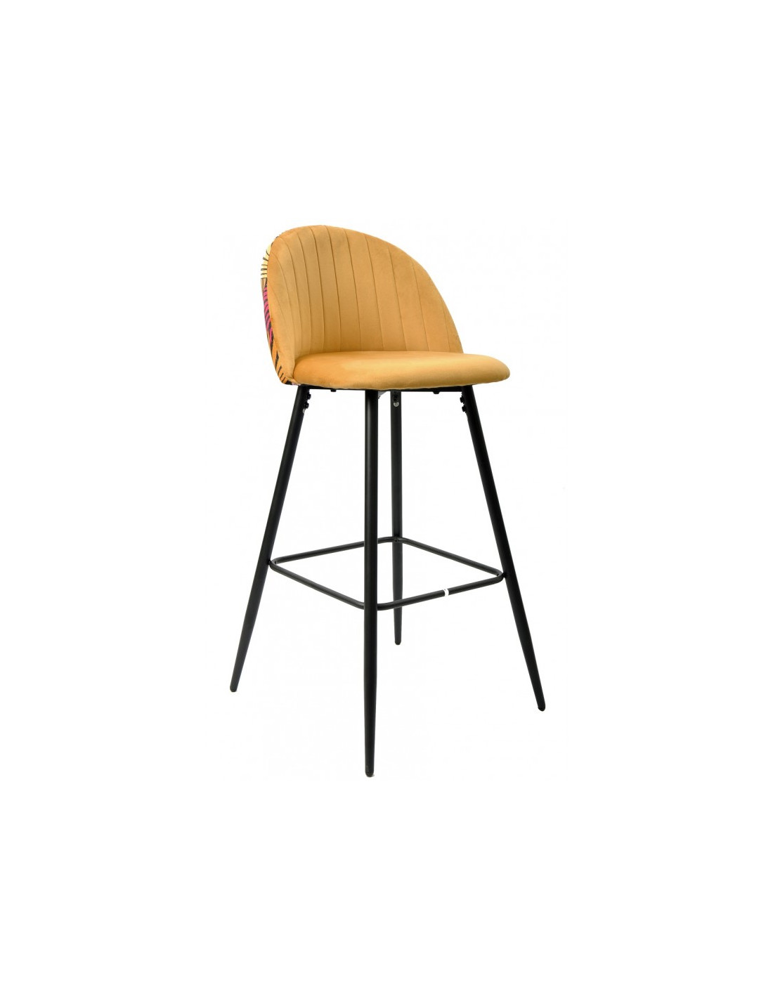 Este taburete tapizado en terciopelo Velvet combina elegancia y comodidad en un diseño pensado para destacar en cualquier espacio. Su respaldo curvado con delicadas costuras verticales ofrece ergonomía y estilo, mientras que el estampado floral en la parte trasera aporta un contraste colorido y distintivo. Las patas metálicas en negro garantizan estabilidad y un acabado contemporáneo que realza su presencia. Perfecto para salones, comedores, oficinas, salas de espera o rincones especiales del hogar, es una pieza versátil que une funcionalidad y personalidad en un solo mueble.